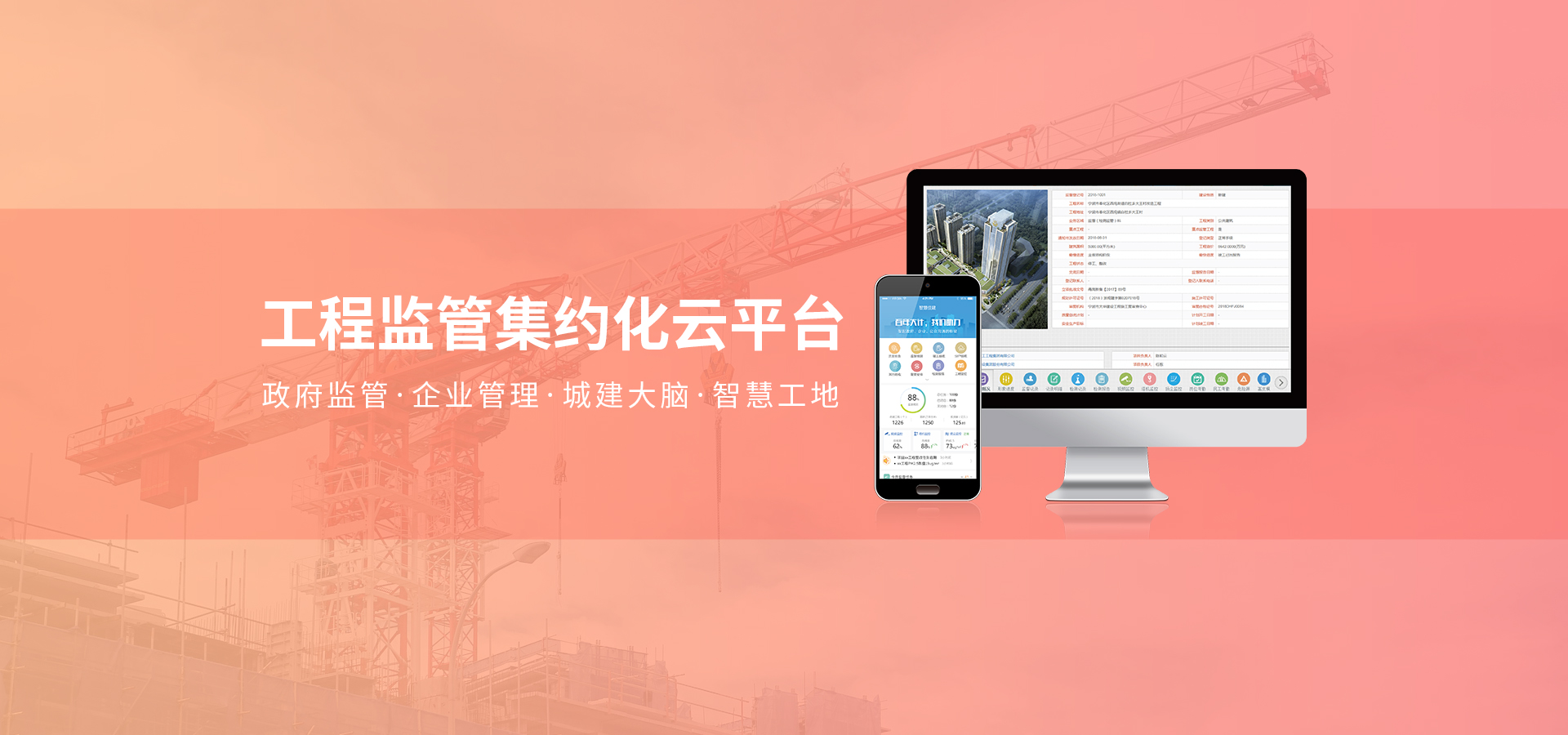 實現(xiàn)政府包括質(zhì)量安全監(jiān)督、檢測監(jiān)管、智慧工地(視頻、塔機等)、